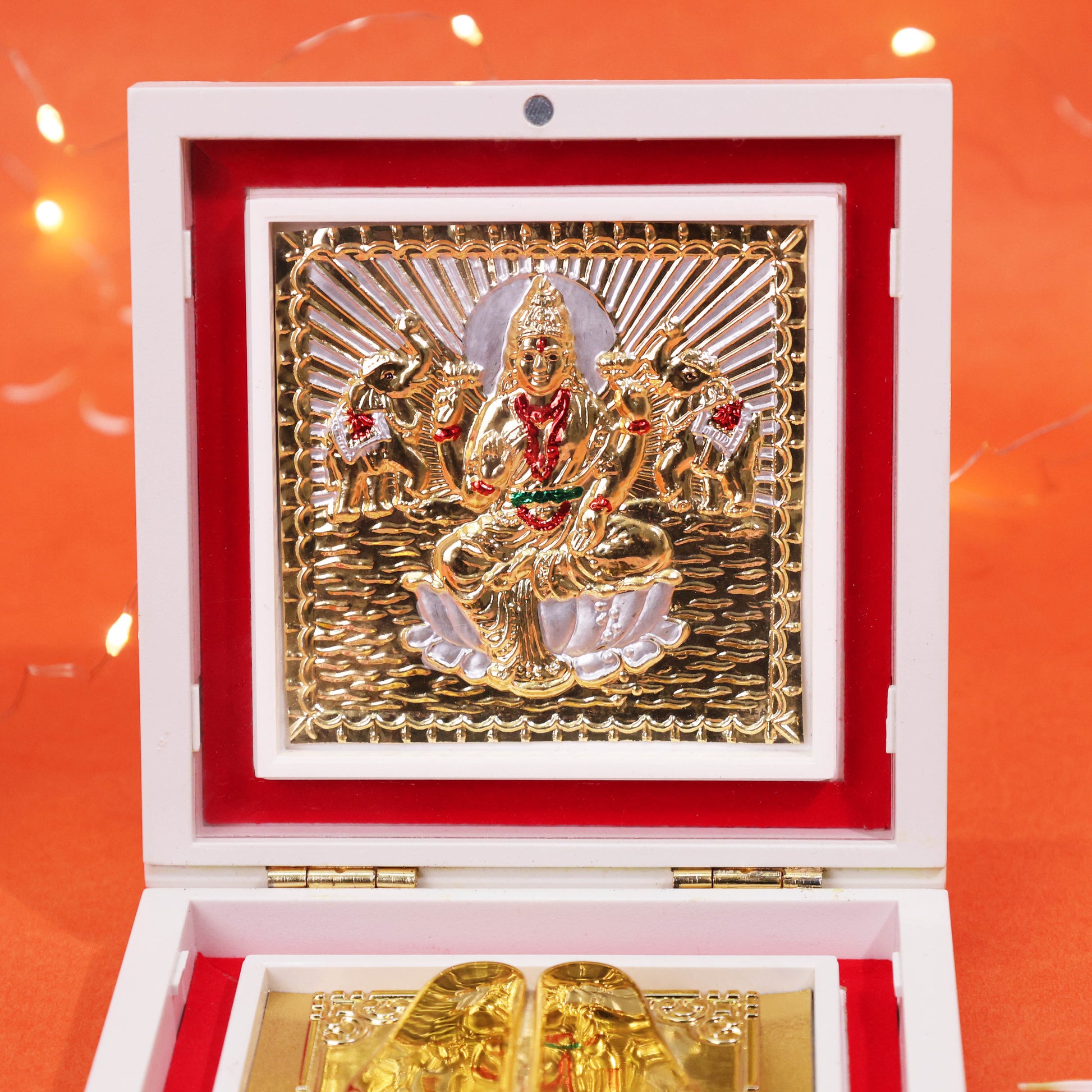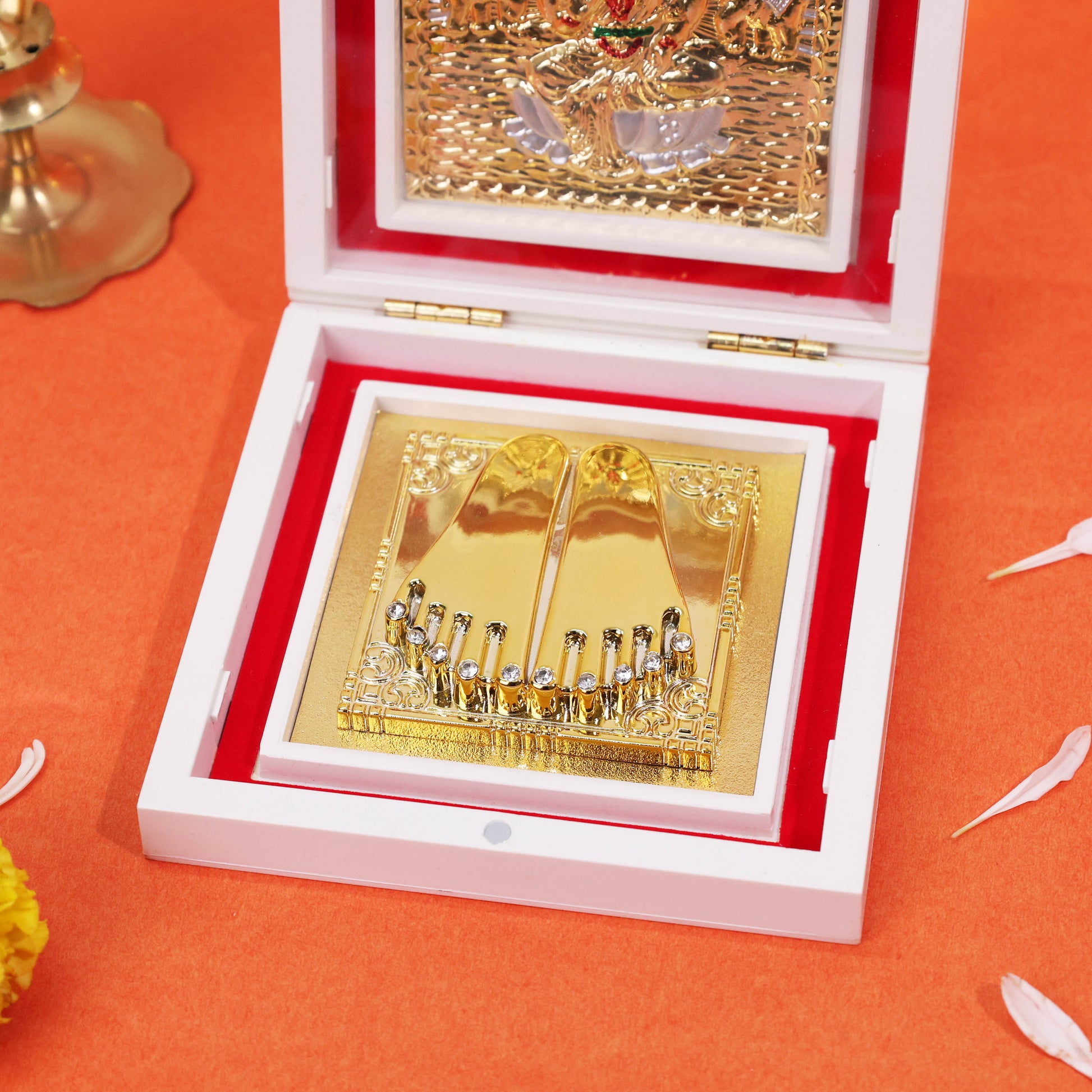 3D Charan Paduka with Lakshmi Ji Idol Box | Diwali Pooja Items for Home Mandir Office Temple Decoration