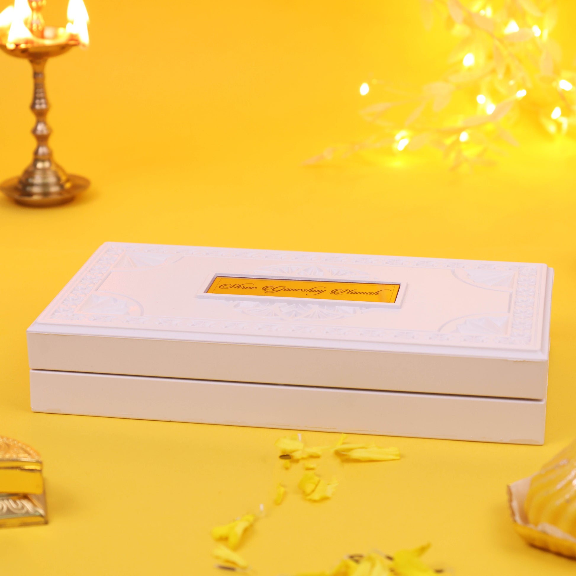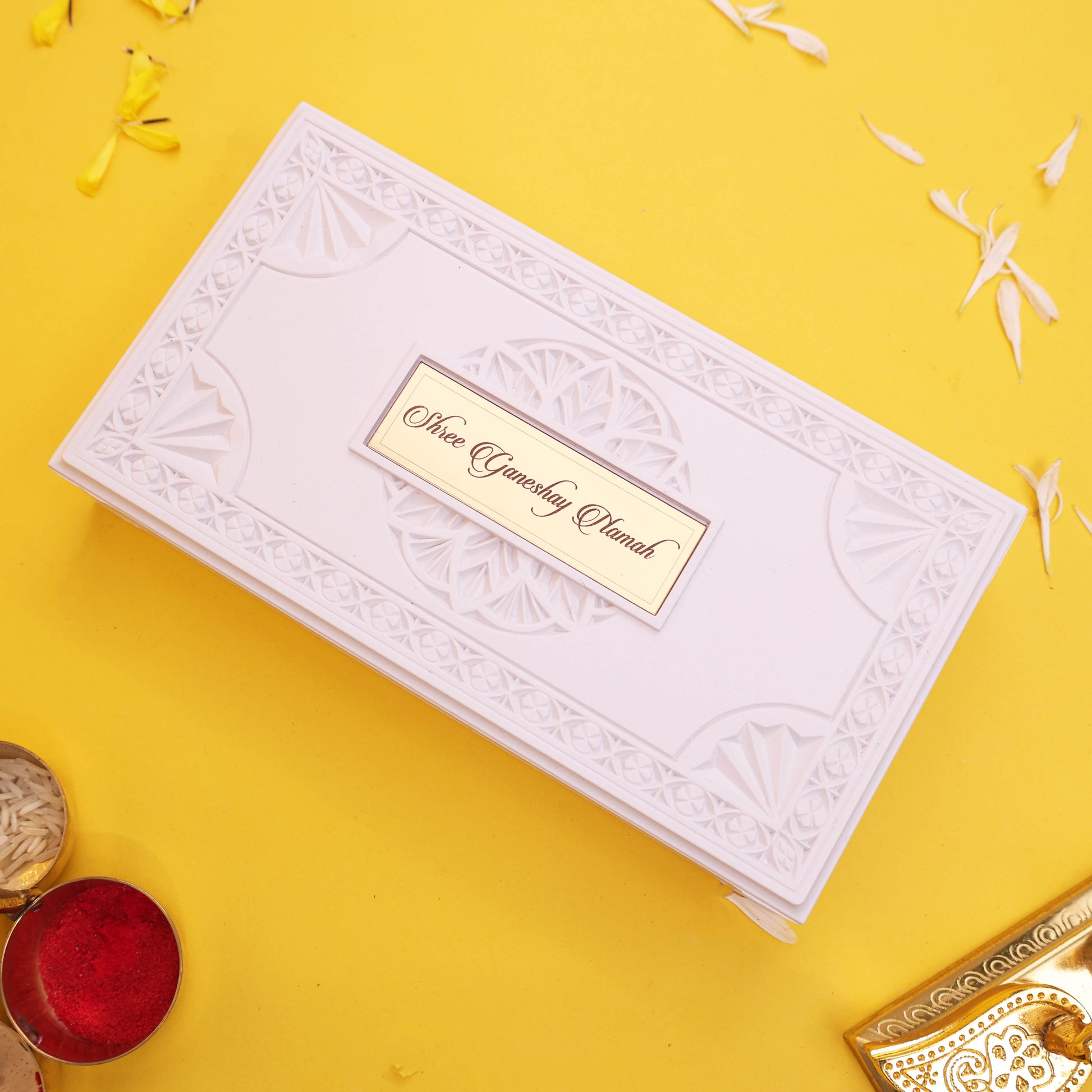 Invoke the divine blessings of Lord Ganesha into your home with this 3D Charan Paduka Frame — a sacred symbol of success, wisdom, and prosperity. Expertly designed with gold plated detailing, this features Lord Ganesh’s intricate idol and charan paduka (footprints), beautifully set in a premium white box with red velvet lining. The Ganesh Ji Charan Paduka Box represents spiritual purity and devotion, making it a perfect addition to your puja room, home temple, or office worship space. Each frame comes with two embossed gold coins and a central 3d charan paduka design, radiating positivity and divine energy. Whether you are searching for a 3D Ganpati charan paduka , gold plated religious gift, spiritual decor item, or auspicious gifting option, this 3D paduka frame fits every purpose. It serves as a blessing gift for loved ones, bringing luck, wealth, and harmony. Ideal for festivals, Diwali, or Ganesh Chaturthi, this Lord Ganesha 3D paduka frame combines devotion with timeless elegance — a must-have spiritual décor piece for every home.