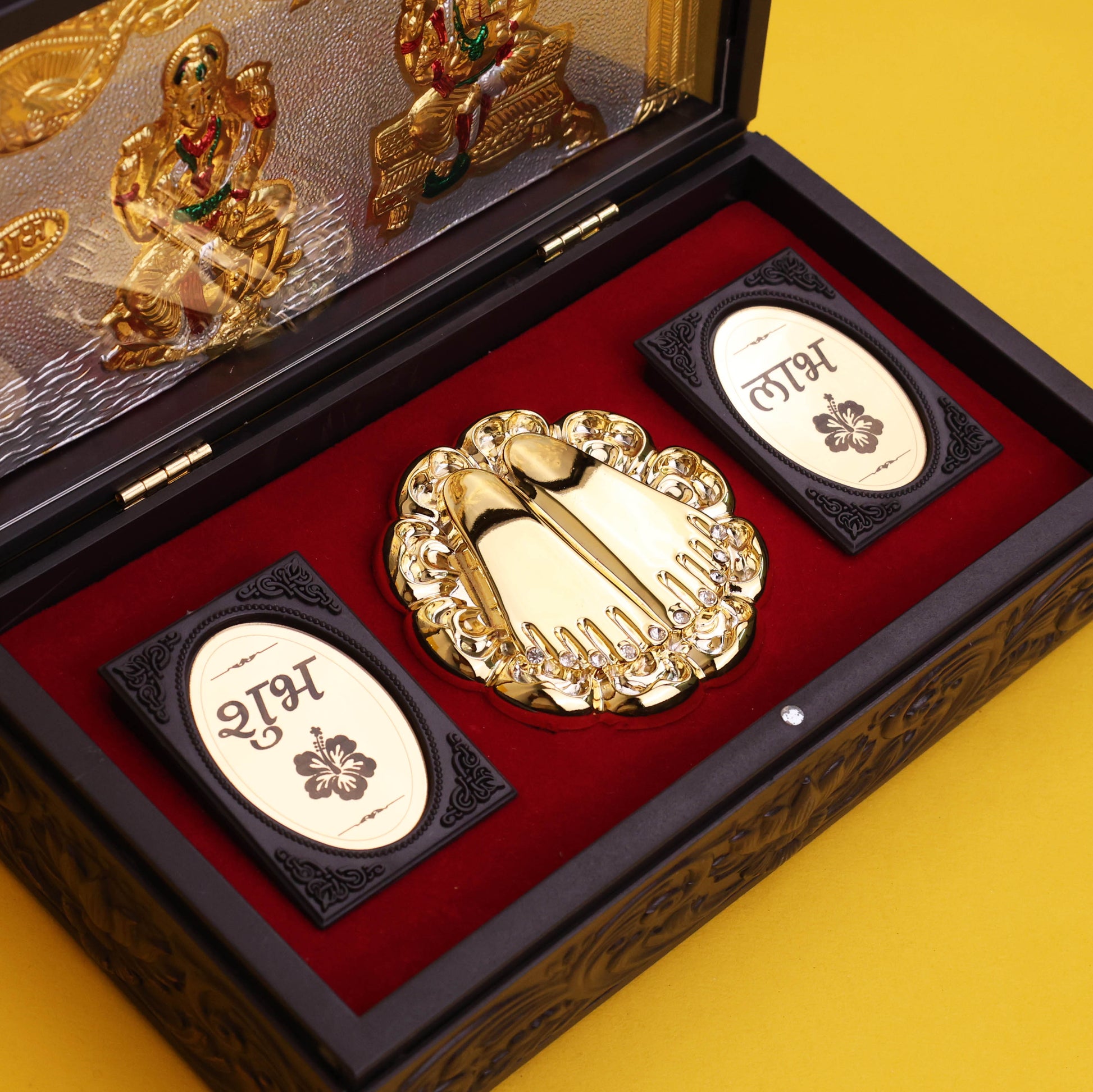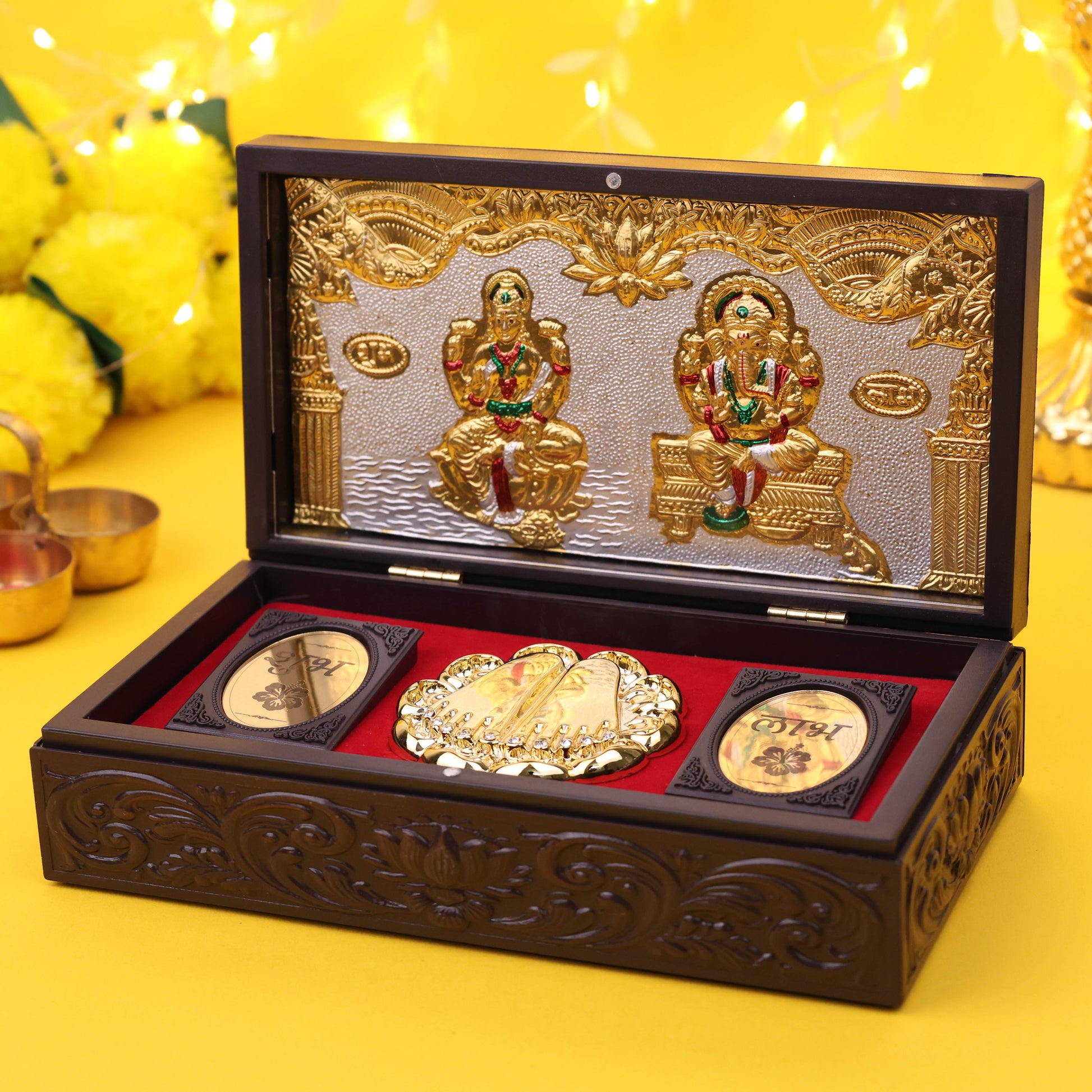 Ganesh Lakshmi Charan Paduka with Premium Wooden Pooja Box | Vastu & Spiritual Gift