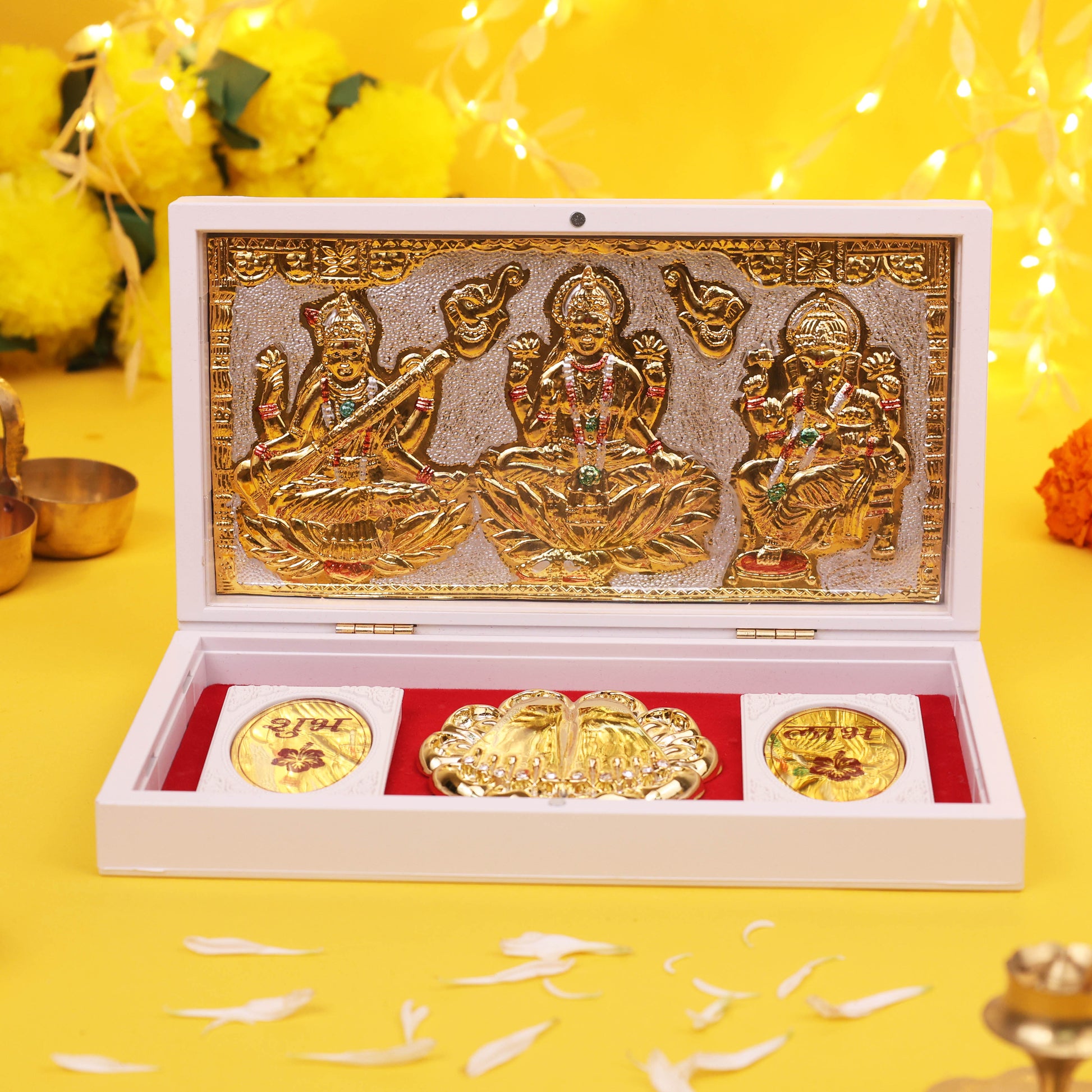 - Ideal Religious Gift Item – A thoughtful and spiritual gift for Diwali, Dhanteras, Navratri, Housewarming, Wedding, or Anniversary. This Laxmi Ganesh Saraswati gift set spreads divine vibes and prosperity.