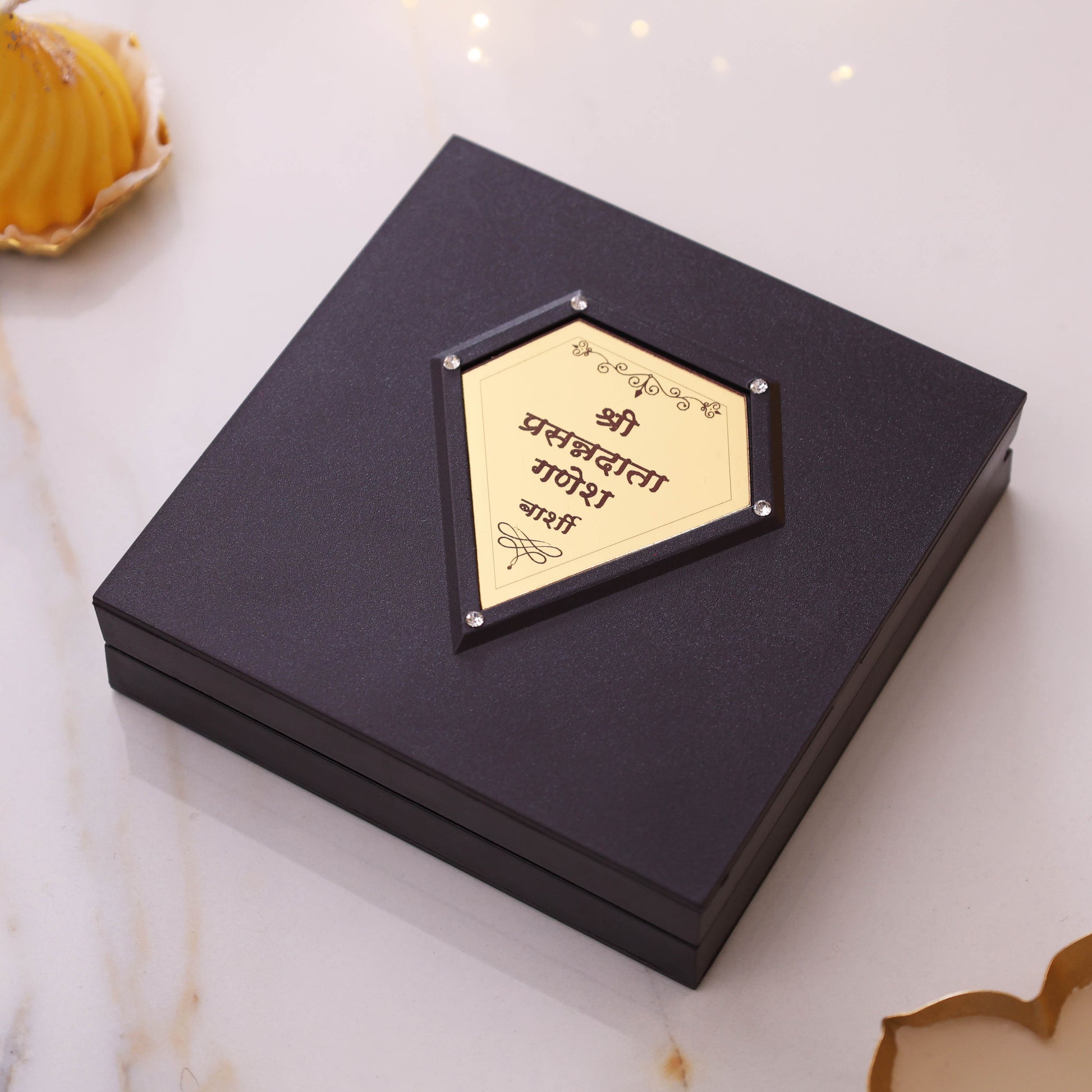Premium Wooden Box with Ganesh Image – Comes with a beautifully crafted wooden box featuring Lord Ganesha artwork, perfect for gifting and display
