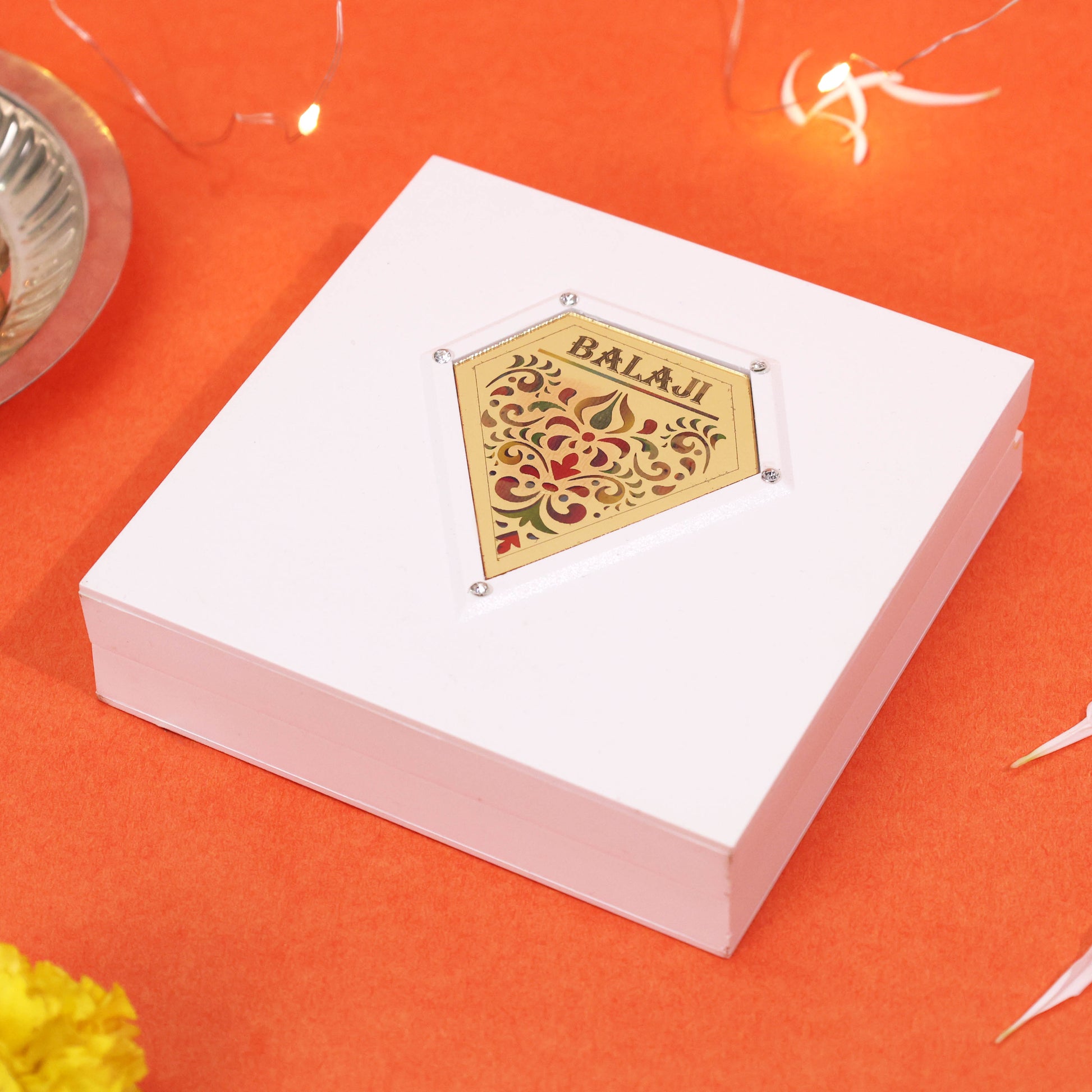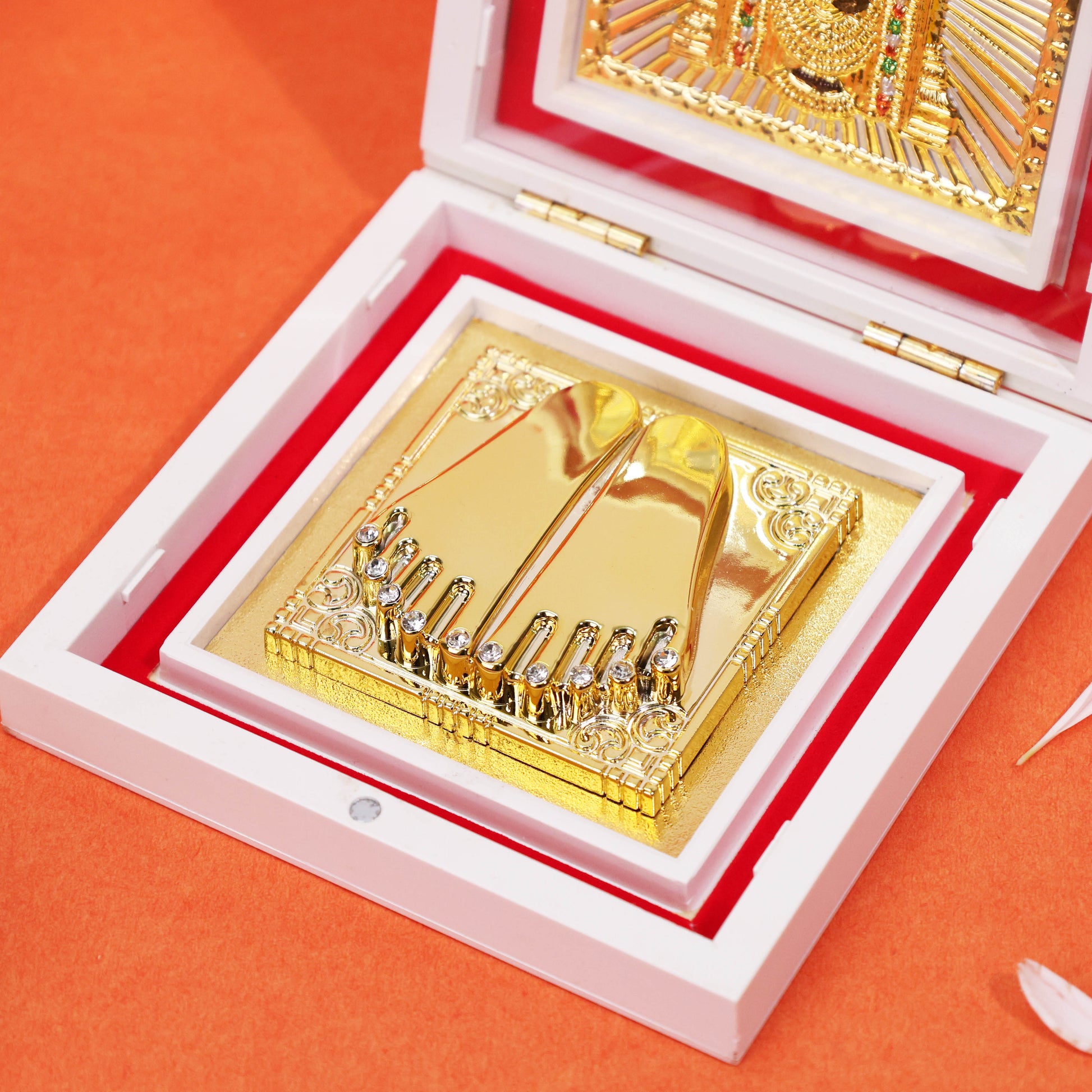 - Divine Tirupati Balaji Charan Paduka: Bring home blessings of Lord Tirupati Balaji with this beautiful Charan Paduka Gift Box — perfect for your pooja room, home temple, or gifting.